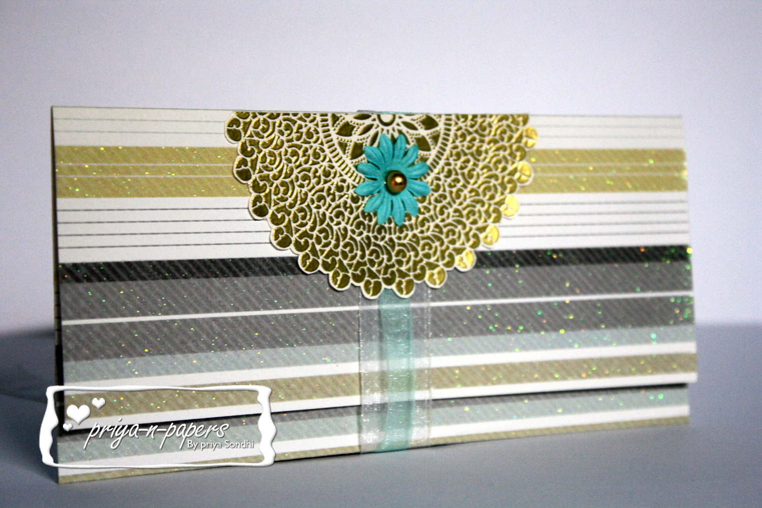 I made 2 sets of money holder with different pattern papers.. which you can use to gift money to your near and dear ones on special occasions.. for both the sets I used Hero Art's Starburst Lace Stamp which I can go on and on using it..The design is so b'ful.. It has some indian ethnic touch which makes it more useful... I am not able to think of any other stamp as of now.. this is my new found love!