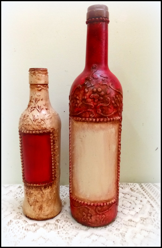 Here is how both the bottles look after a coat of satin varnish. Not done yet, they wanted company! So decided to make a picture frame to compliment these bottles..